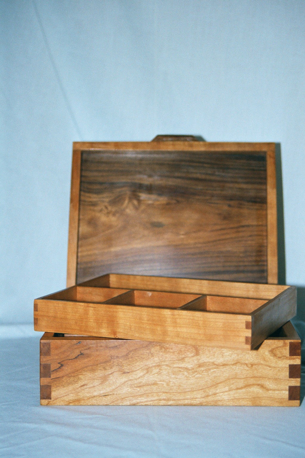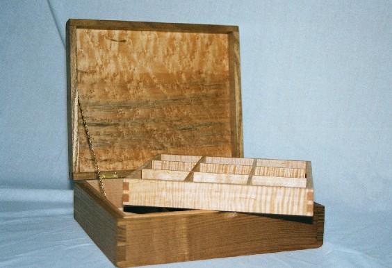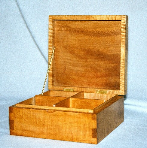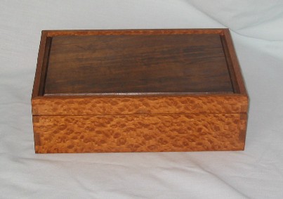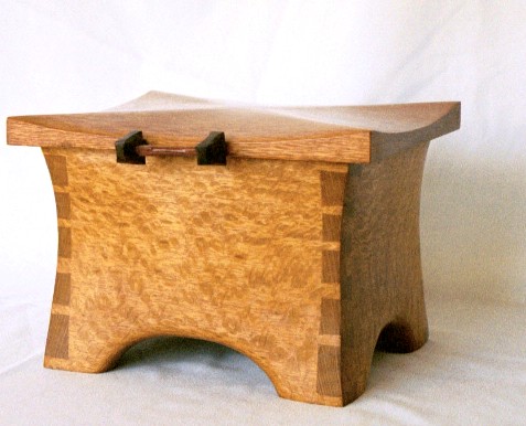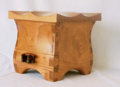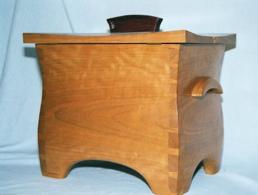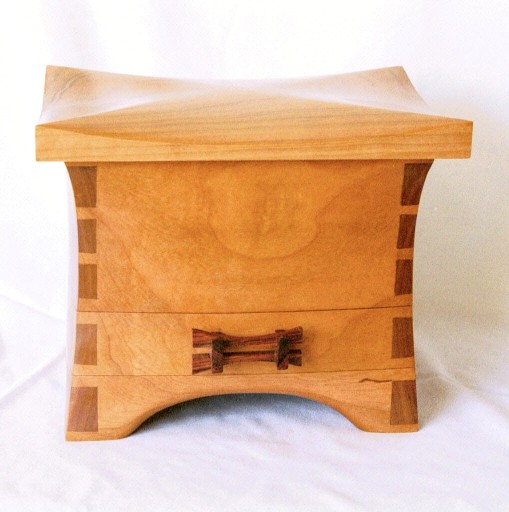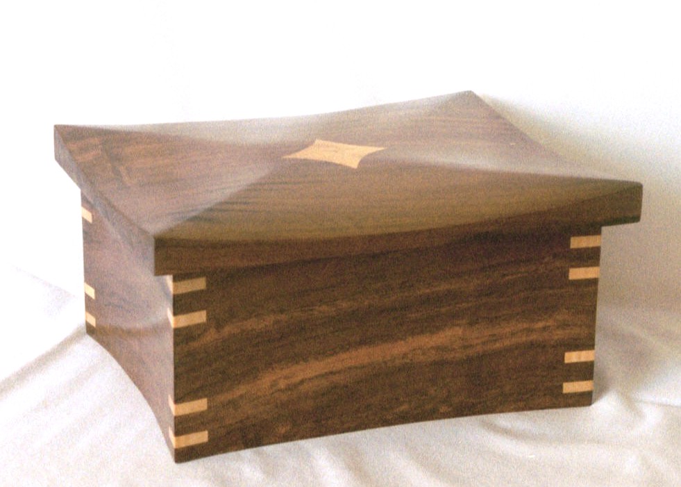 I started out making fairly conventional, rectangular boxes, usually out of figured woods with contrasting inlays. Several years ago I began experimenting with shaped boxes with curved sides and tops. These seem to be very popular and I like the way they look. It's a fair amount of handwork to shape the boxes after a basic rectangular box is made and I've worked out my own techniques for doing it.
