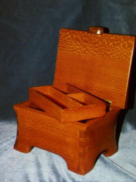 I've made a few jewlery boxes out of it. This one I consider one of my best pieces. I had some fairly thick wood, so I was able to curve the edges a fair amount. The curves on the top add to the slightly oriental look of the piece and at the same time make the top lighter. The box, nevertheless, ended up being pretty solid.