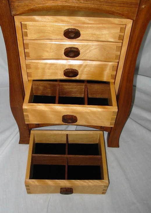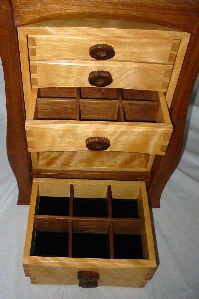 jewelry boxes. The cabinets are joined with hand cut dovetails, as are all the