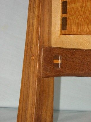 The fourth of these pictures shows the details of the pegged and wedged mortise and tenon joints used on the stand.