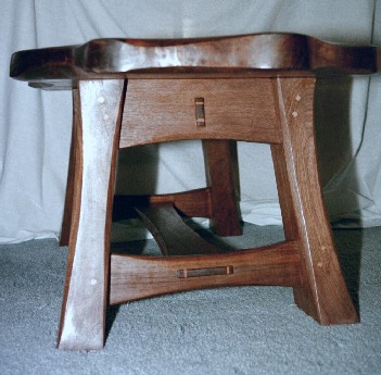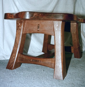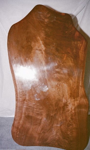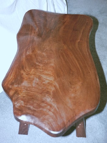 From the outset, I have to apologize for the photography. I have a hard time arranging the lighting in my house to photograph larger pieces and the pictures here don't capture the real beauty in this wood. Anyway, I was shopping for some ordinary wood, when this slab of walnut jumped out at me and demanded I take it home.