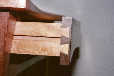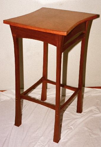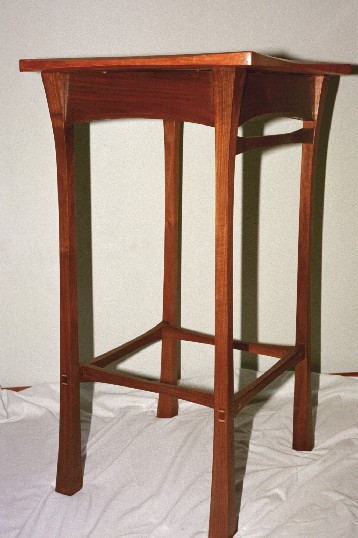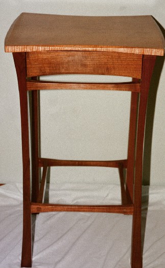 Whatever you call it, it's amazing stuff. This top is finished with a light amber dye stain and French polished orange shellac. The chamfers on the edges were done with a spokeshave to give the top a lighter and more graceful look.